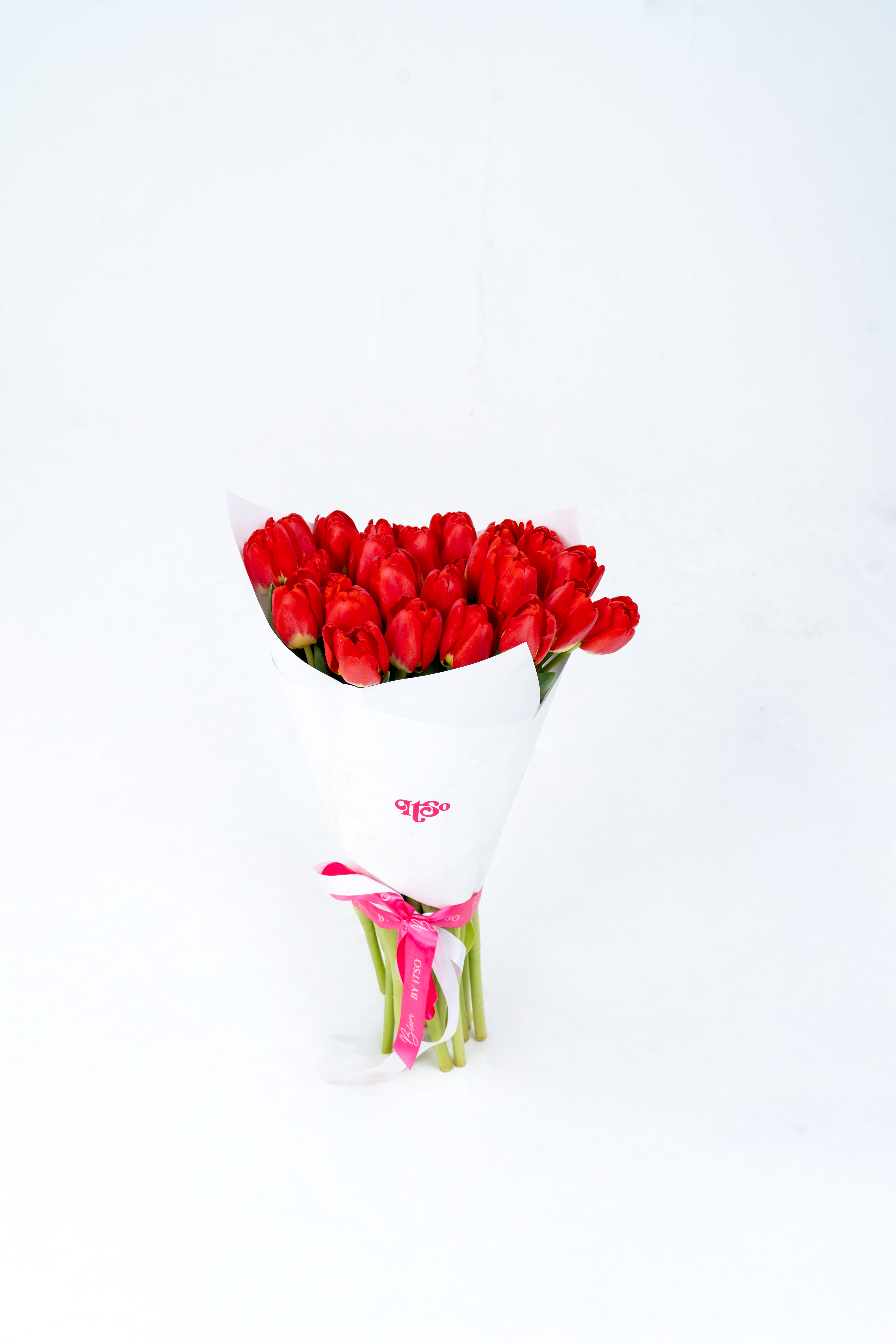 A fresh, modern bouquet of vibrant red tulips, hand-cut and simply arranged for a look that feels clean, expressive, and effortlessly romantic. Tulips bring a softer, more contemporary take on Valentine’s florals — bold in colour yet gentle in feeling.